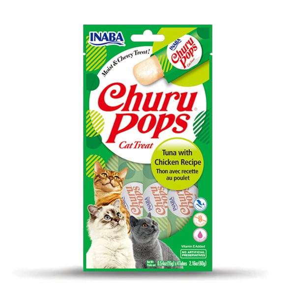 Churu Pops poslastice u vidu lizalice za mačke su napravljene od tune i piletine, ne sadrži žitarice, konzervanse i sadrže veoma nizak procenat masti.