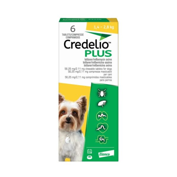 Uspešno primenjen na 100% pasa, Credelio Plus je ukusna tableta koju psi lako prihvataju1 i dizajnirana je za upotrebu kod štenaca od 8 nedelja i od samo 1,4 kg. Obezbedite sveobuhvatnu zaštitu od parazita uz Credelio Plus, deo asortimana pogodnih i pouzdanih Elanco tretmana protiv parazita.